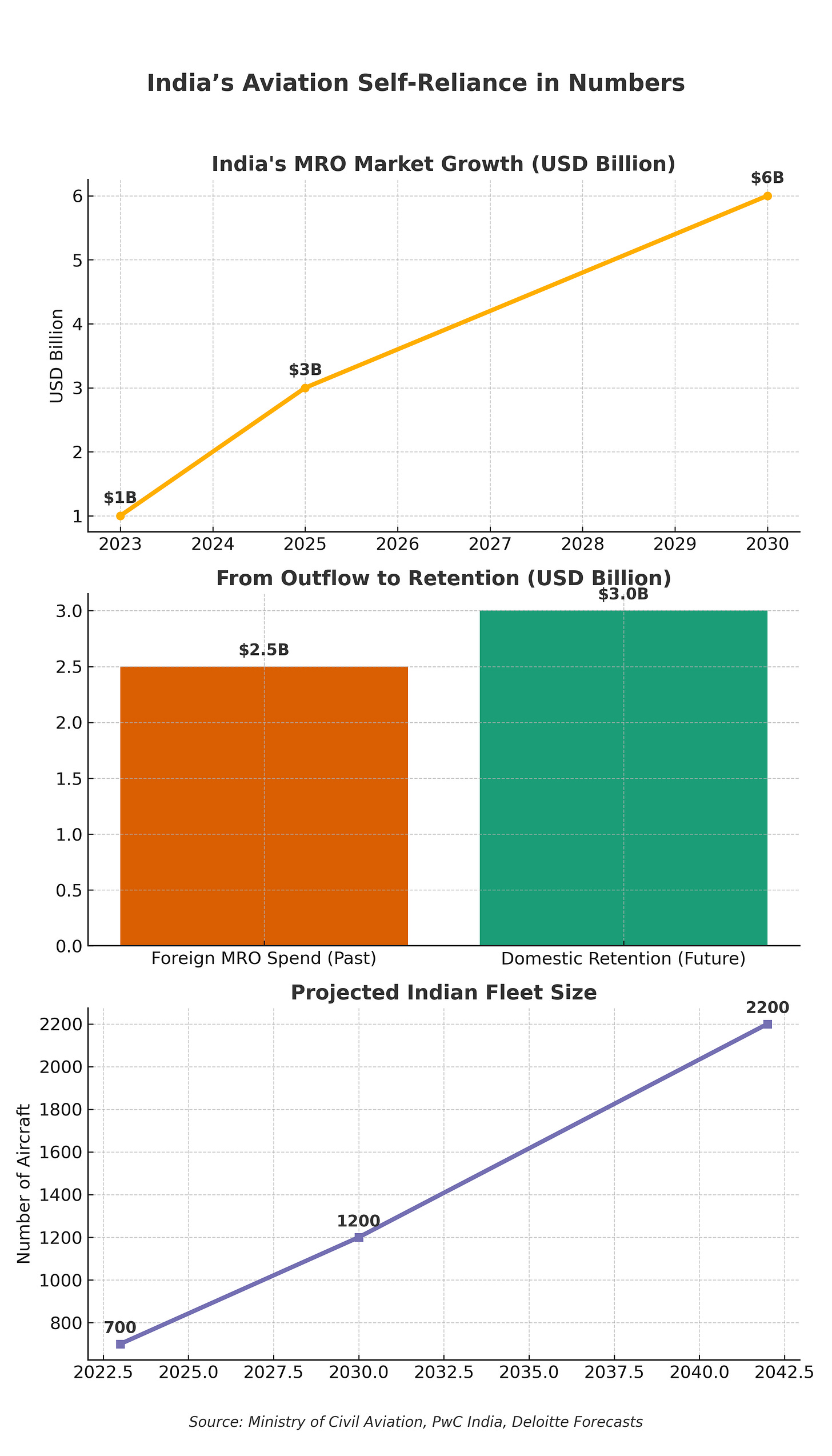 The global MRO market is projected by Deloitte to reach $156 billion by 2035. India’s ambition is to secure a 3–5% share—a slice worth $7–10 billion.