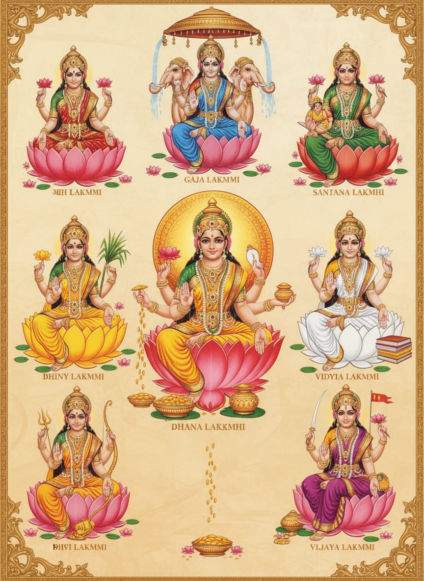 Vidya Lakshmi, she refines understanding into enlightenment.
